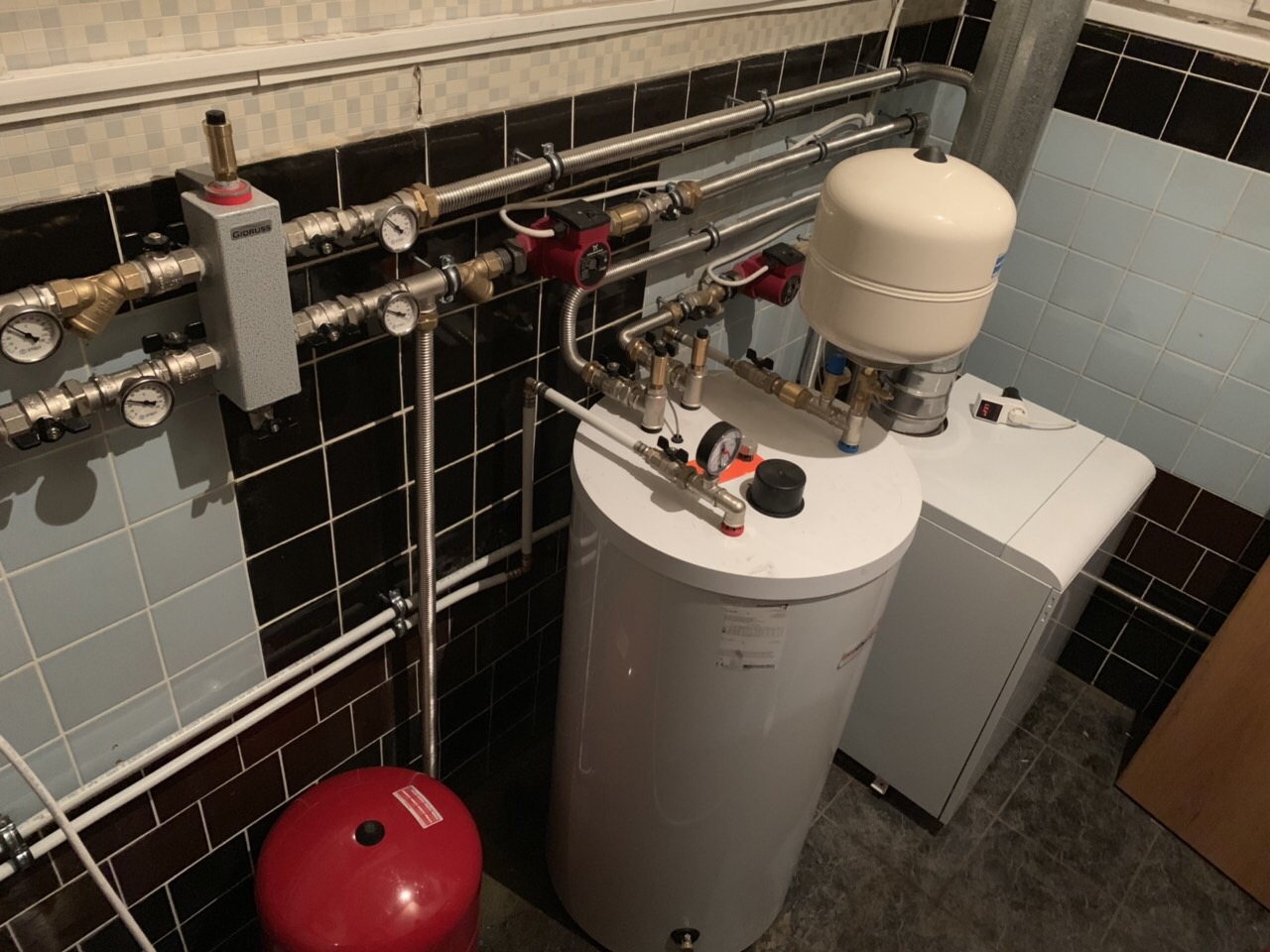 Переделка котельной в пос. Першино. Обновили и смонтировали следующее оборудование: Пакет Protherm (котёл Медведь 50 KLOM (45 квт), бойлер FE 200/6 BM (200 л), терморегулятор Теrmolinks, датчик наружной температуры , датчик бойлера), насосы Grundfos, расширительные баки + гидрострелка GIDRUSS. Котельная полностью готова к началу нового отопительного сезона !