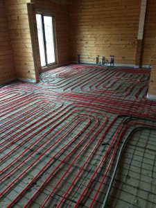 Теплый пол в коттедже - это комфортный вариант отопления. Температура поверхности водяного пола 27 – 29 градусов. Именно по такому полу приятно ходить и он не обжигает. При выборе водяного пола в качестве основной системы отопления частного дома Вы достигаете наиболее правильного распределения тепла в помещении. Трубы водяного теплого пола нагревают Ваш каменный пол, он прогревается и от него тепло распространяется снизу вверх за счет тепловой радиации.